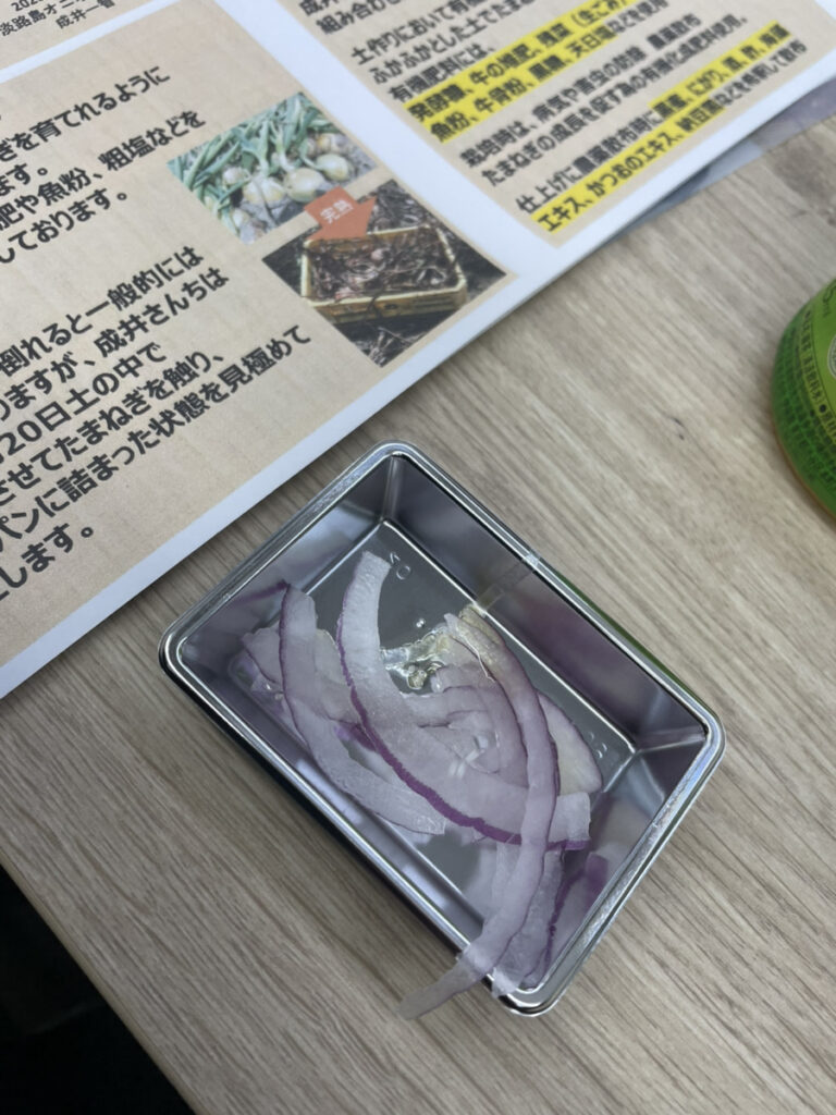 - 実食: 生のオニオンスライスは驚くほど甘く、グリルしたものは中がトロトロ。たまねぎの概念が変わる体験でした。
